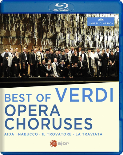 C Major Entertainment presents, in both single-disc DVD and Blu-ray editions, the Best of Verdi Opera Choruses. During the course of the following ninety minutes, viewers will both see and hear the choir hits from an array of Verdi Operas, including Nabucco, La Traviata, Aida, Il Trovatore, and several others. Among the Verdi choruses to be heard sung by the Orchestra e Coro del Teatro Regio di Parma and the Orchestra e Coro del Teatro di San Carlo, among others, are Tre volte miagola la gatta in fregola Patria oppressa! from Macbeth, Vedi! Le fosche notturne spoglie from Il Trovatore, Noi siamo zingarelle ... Di Madride noi siam mattadori from La Traviata, Tutto nel mondo e burla from Falstaff, and more.